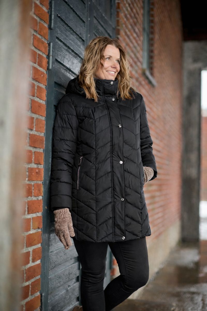 Lang luksus dynejakke fra danske Danwear som er en favorit i de kolde vintermåneder. Modellen sidder behagelig let og lukker vinden ude. Den er designet i en super flot, feminin pasform så den nemt kan bruges som en pæn hverdagsjakke. Damejakken har en praktisk lynlås, låsbare lommer, en inderlomme og en høj krave med aftagelig hætte. Design, komfort og praktik forenes i den lækre vind- og vandafvisende skandinaviske model. 100% Polyester